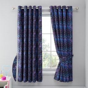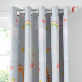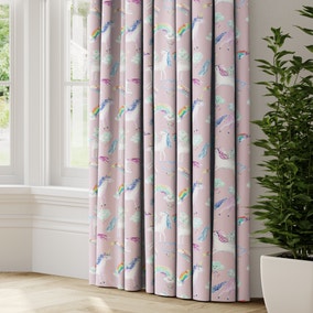 Pink Unicorn Stars Blackout Eyelet Curtains